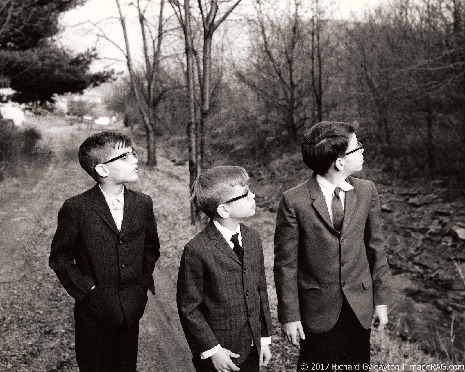 | Tyrone in from of my Grandmother\’s house. Smoke from paper mill on the right. |
