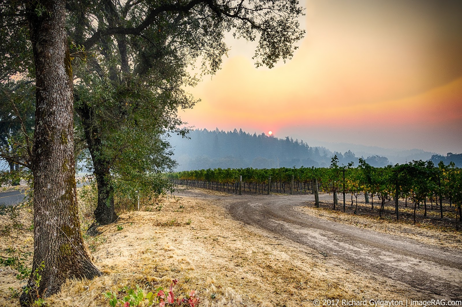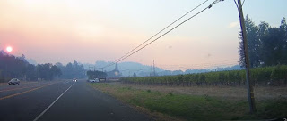 Sun and smoke. Bale Road south of Calistoga.